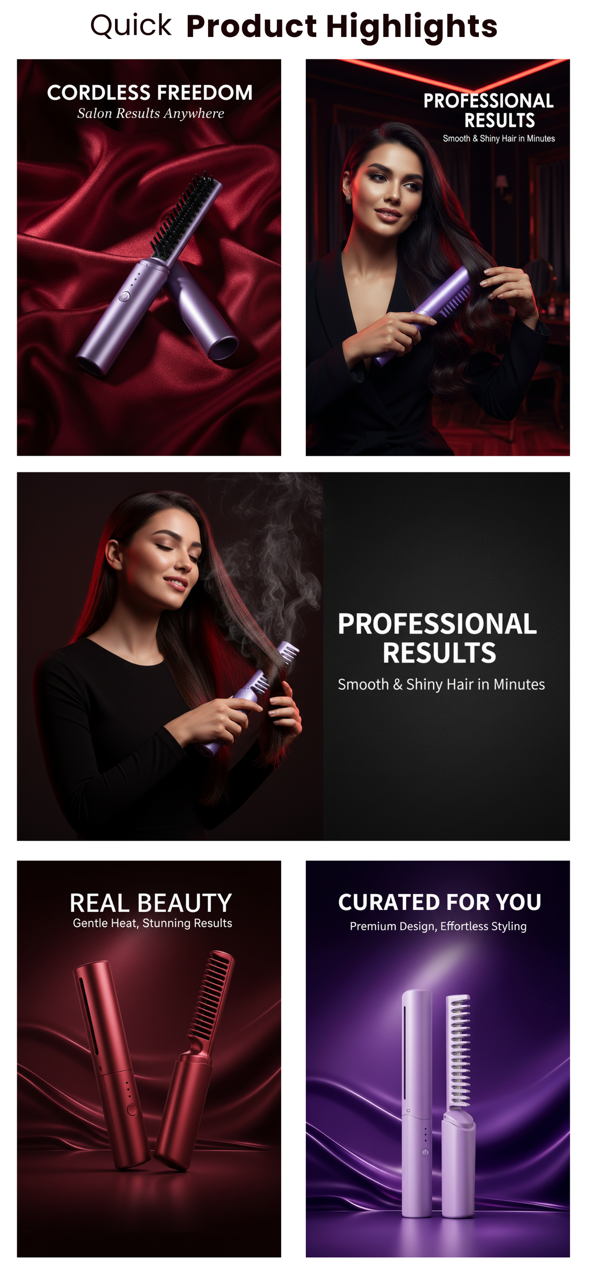• Totally Cordless Freedom 🕊️ No more tangled wires or searching for an outlet. Style your hair anywhere—at your desk, in the car, or at the airport.